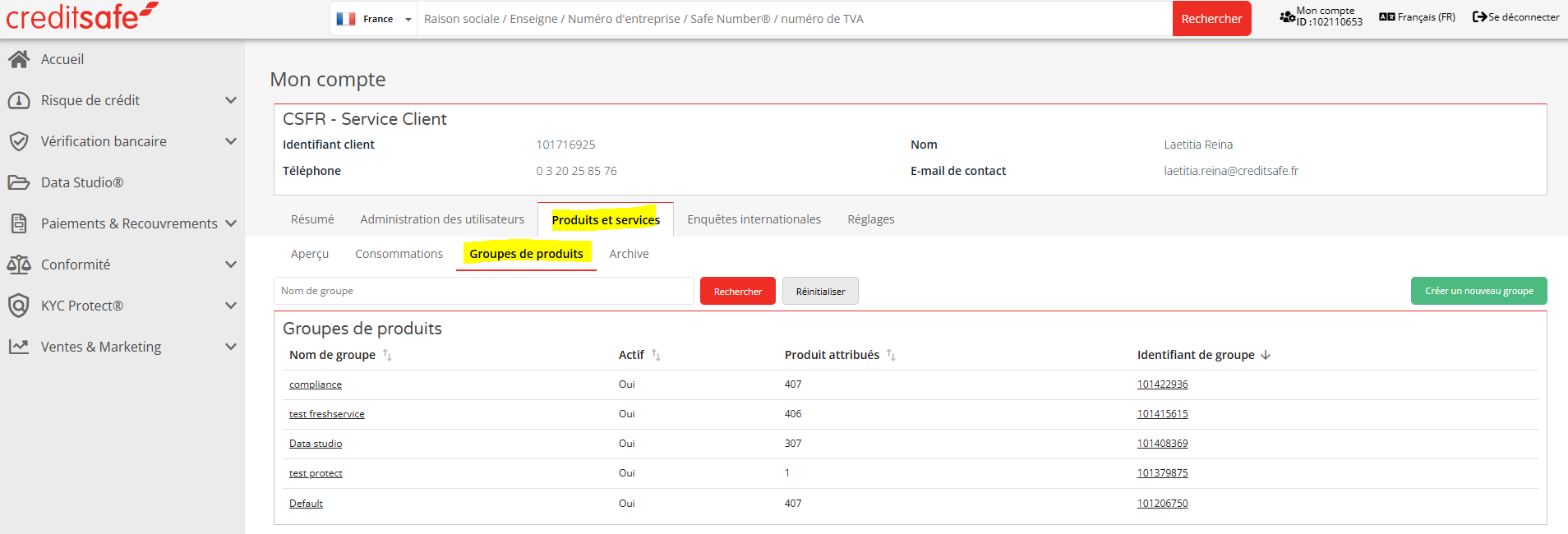 To access Product Groups within Customer Self Service, Click on the Products & Services tab, then navigate to the Product Groups tab. Pour accéder aux Produits et services dans le Centre de gestion utilisateur, cliquez sur l’onglet Produits et services, puis allez dans l’onglet Groupes de produits.